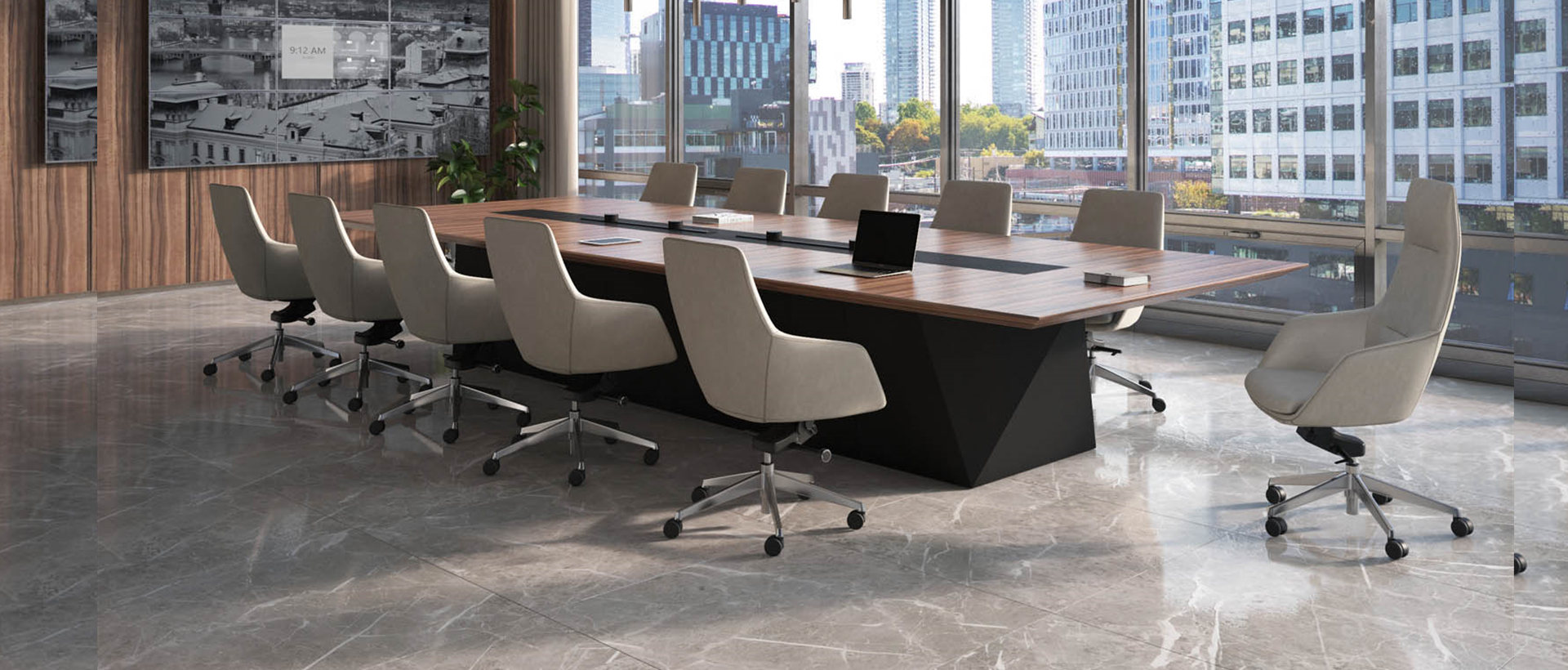 如何挑選最好的會議室桌椅設計會議室的關鍵在于舒適性和功能性。畢竟,您可能會在房間里花費一到四個小時來參加重要的協作會議或董事會會議。因此,選擇合適的會議桌椅以使您、您的團隊和任何客戶在空間中感到舒適至關重要。 -